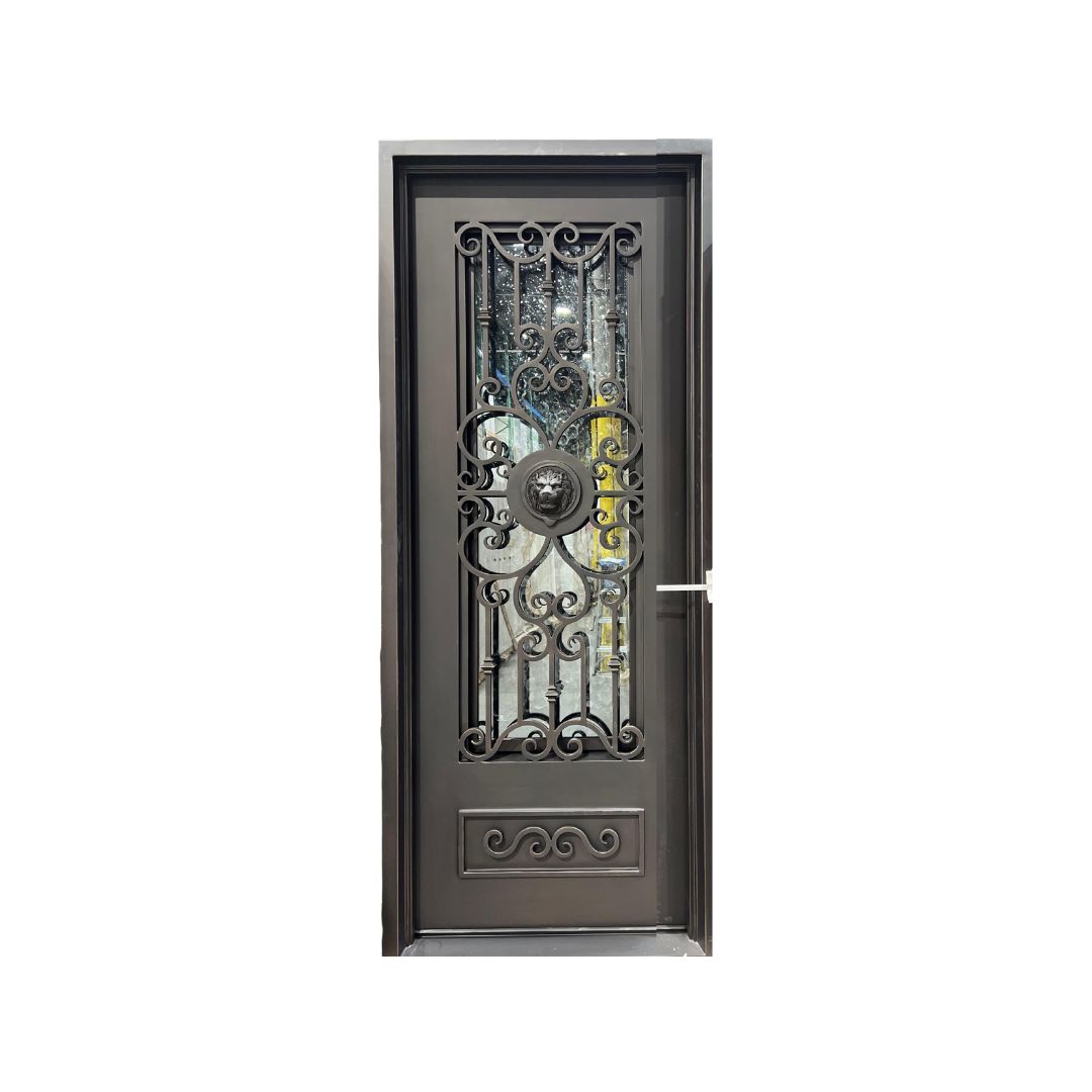 3/4-lite Decorative Single Wrought Iron Door with Lion Design