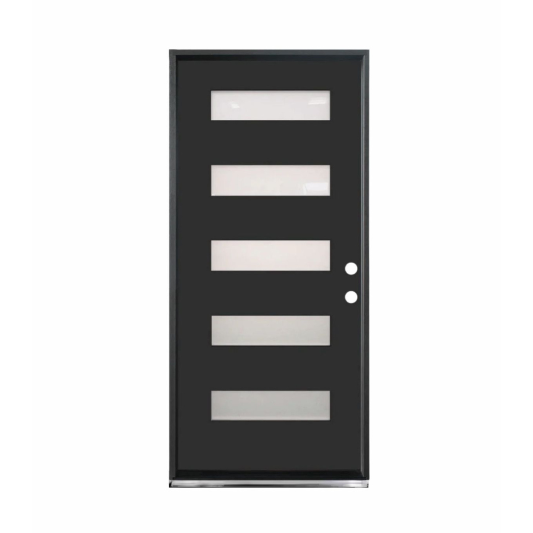 Single Prehung Fiberglass Door with 5 Lites in Black