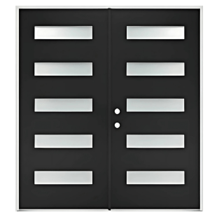 The Double Door With 5 Flush Glazed makes a bold statement while balancing transparency and strength. It features five frosted Low-E glass panels set flush into a fiberglass frame, which delivers both style and energy efficiency. Because of its weather strip, bottom sweeper, and composite sill, it resists drafts and keeps your space comfortable.